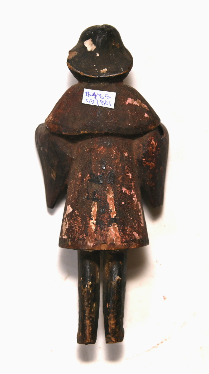 An 18thC Spanish Or Spanish Colonial Carved Wood Devotional Figure Depicting A Bearded Saint With Headdress, Cassock And Linenfold Smock, With Much Original Limed Decoration. 297mm High. Circa 1750. Lacks Lower Legs And Hands, Nice Patinated Aspect.