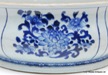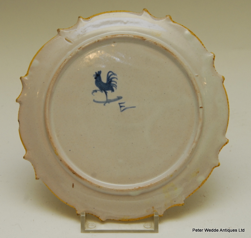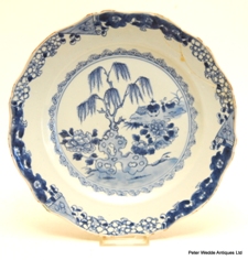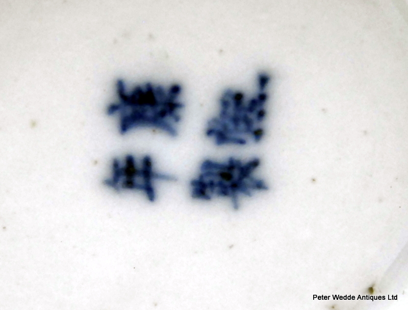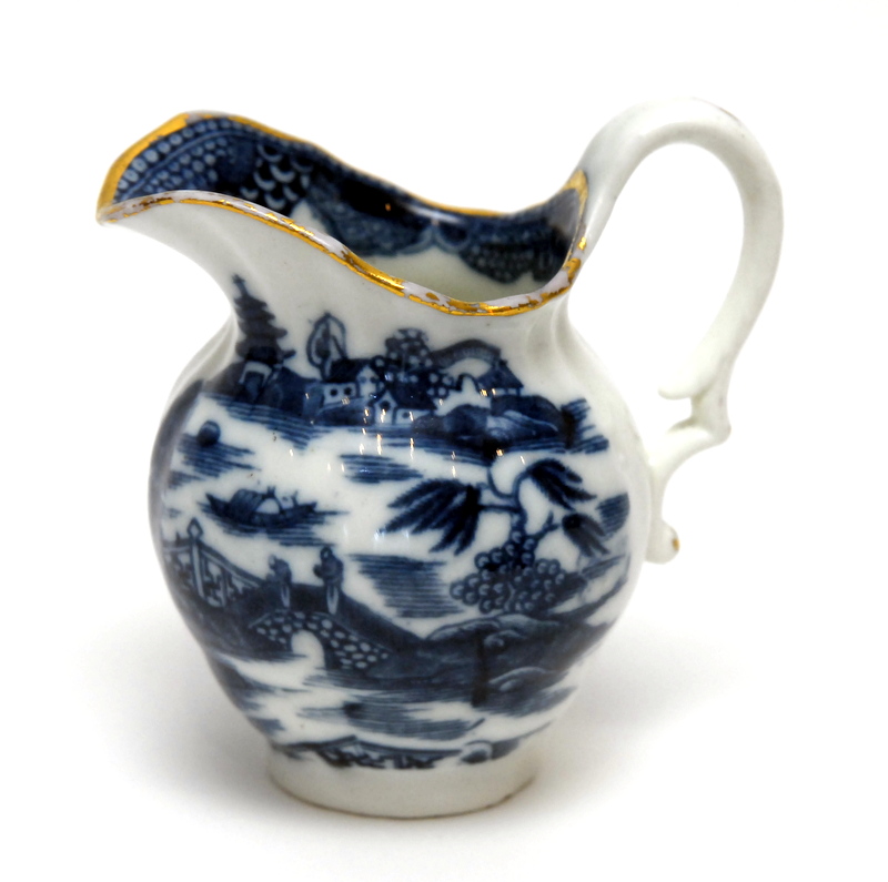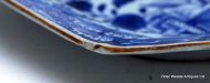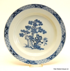 in underglaze with the Fence Pattern. Printed crescent mark circa 1780. |